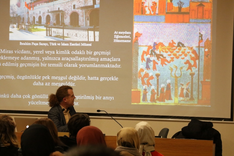29 Aralık tarihinde düzenlenen Kültürel miras alanında uzman isimlerle söyleşilerden oluşan KURAM Kültürel Miras Buluşmaları’nın altıncısına konuk olan üniversitemiz öğretim görevlisi Prpf. Dr. Hasan Fırat DİKER, “Tarihi Yapıların Yeniden İşlevlendirilmesi Bağlamında MÜZELEŞTİRME’’ başlığında bir konuşma gerçekleştirdi. KURAM Müdürü Dr. Öğr. Üyesi Onur Şimşek ve Kültür Varlıklarını Koruma ve Onarım Bölümü Başkanı Doç. Dr. Mine Esmer moderatörlüğünde gerçekleştirilen program sonrasında ikramlar ve çay eşliğindeki sohbet ile birlikte sona erdi.