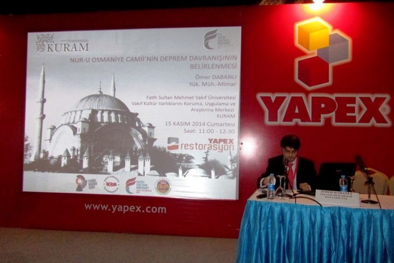 KURAM, fuarda açtığı stant ile birlikte fuar kapsamında düzenlenen etkinliklerde de yer aldı. Konferans etkinlikleri çerçevesinde KURAM Müdürü Öğr. Gör. Ömer DABANLI, KURAM’ın Nur-u Osmaniye Camii’nde yaptığı çalışmaları anlatan “Nur-u Osmaniye Camii’nin Deprem Davranışının Belirlenmesi” konulu bir sunum gerçekleştirdi.